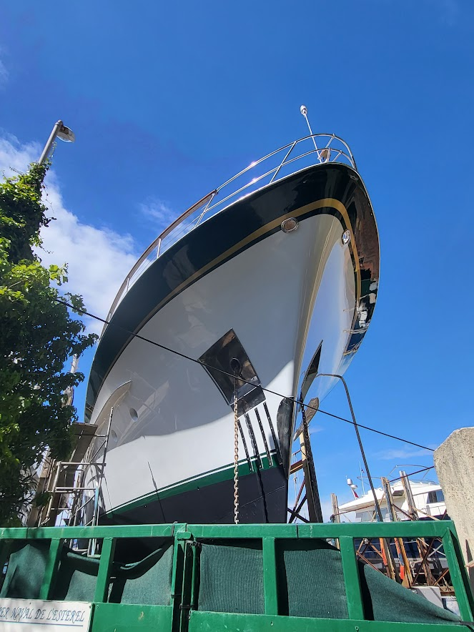 Ett vackert fartyg på land för att få lite underhåll, här på den ljuvliga ön Île Sainte-Margeruite, bara en kort båtfärd bort från Cannes alternativt Antibes.