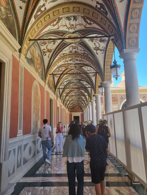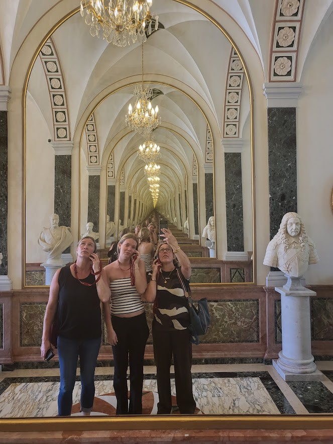 Prinsfamiljen tog sig till den del av palatset som är stängt. Jag och mina vänner tog oss till den del som är öppen för besökare. Öppettiderna är från april till oktober dagtid mellan klockan tio och halv sex. I juli och i augusti är öppettiderna en timme längre på eftermiddagen. Då det inte var högsäsong var trycket på besökarna inte alltför illa, utan vi tog oss snabbt och smidigt in till en fantastisk upplevelse i Grimaldis historia nu och då, och en arkitektur och design som är unik i sig.
