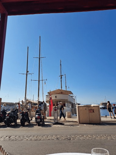 När jag senast åt lunch i Saint-Tropez’ superhak Café Sénéquier (förra veckan) fick jag syn på en mycket vacker yacht som gled in i hamnen. Lyckligtvis angjorde den hamnen mitt framför ögonen på mig också, vilket var en upplevelse.