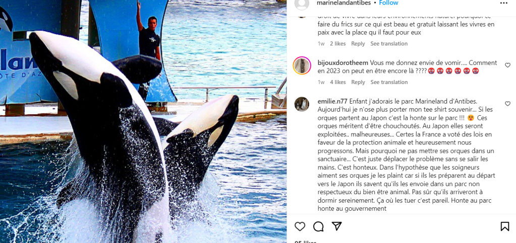 Orsaken är den alltmer strikta politik som förs vad gäller att hålla vilda djur i fångenskap och att exploatera vilda djur i Frankrike. Som The Riviera Lady tidigare skrivit om i inlägget Marineland Antibes, under press, har förutsättningarna för att t ex hålla delfiner i fångenskap ändrats, och med det har också djurrättsorganisationen One Voice tagit chansen att syna djurparkens livsbetingelser för framför allt späckhuggarna som hålls av Marineland.