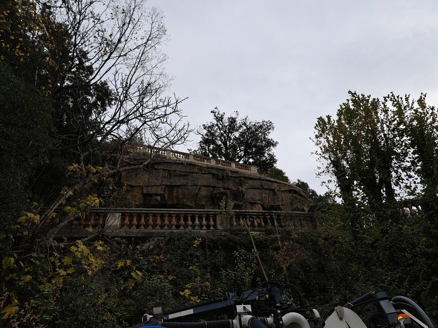 På slottruinernas västra sida, där det är som allra brantast, finns ett fantastiskt vattenfall. Eller ja – det är fantastiskt när det är igång i alla fall och har funnits här sedan 1700-talet. Självklart var det inte igång när jag skulle fota det…. Men ni läsare som ser detta och som har fina bilder på vattenfallet får väldigt gärna lägga in era egna bilder. Resultatet av min fotosession på Colline du Château och det så berömda vattenfallet blev inte riktigt som jag tänkt (renovering pågick).