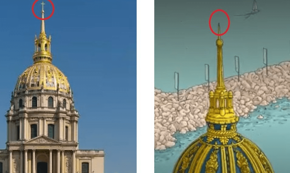 Reaktionerna på affischen (affischerna) har dock varit blandade. Många undrar över det som saknas – Notre Dame, den franska flaggan, korset på toppen på Les Invalides (byggnaden precis till höger om eld-emblemet). Det sista – att Dôme des Invalides inte har ett kors på toppen som den har i verkligheten har också fått politiker att reagera. Man har dessutom reagerat på att spelens maskot – den röda filuren i mitten av ”dubbelbilden” ser väldigt arg eller klurig ut.