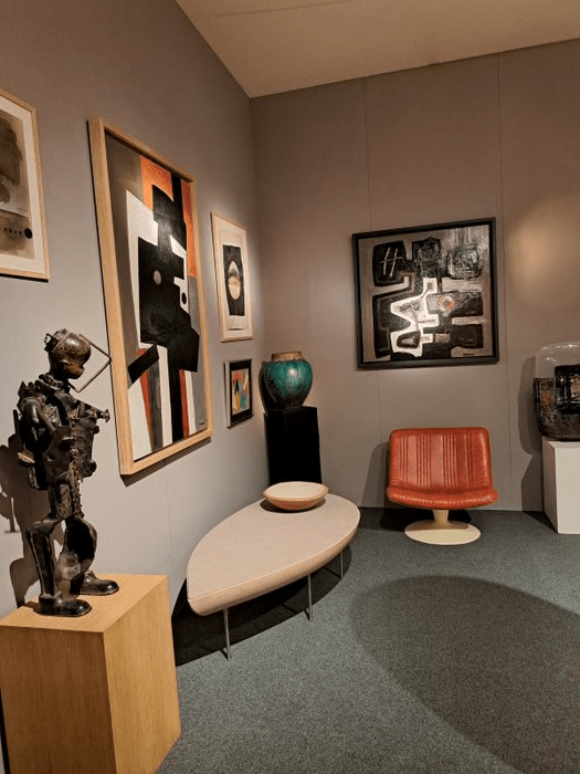 Bland utställarna hittar man allt mellan himmel och jord som har med konst och design att göra. De är allt från återförsäljare av vintage (bland annat fantastiska smycket från Tiffany’s etc) och modern konst, konstnärer som skapar konst själva till företag som renoverar äldre objekt. Modernt och klassiskt, retro och avant garde, allt samlat under ett tak. Roligt nog finns en hel del konst med lokal förankring på olika sätt.