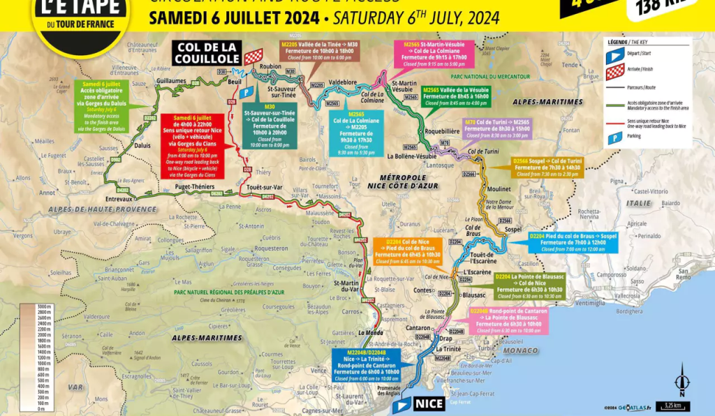Jag har ju tidigare berättat om att Tour de France, det berömda cykelloppet, kommer att ha sin final utmed Franska Rivieran den 20 och 21 juli nu i år 2024. Det beror på att den vanliga slutstationen – Paris har fullt upp inför kommande OS. Så under den helgen kan man räkna med trafikproblem, men också mycket fart och fest på Promenade des Anglais den helgen.