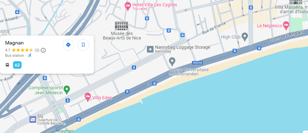 Bussen går varje fredag och lördag i en rundtur med start klockan 10 mellan 5 juli och 31 augusti (högsäsong), efter det fortsätter den att gå på lördagar september ut. Ett dagspass för att kunna hoppa på och av denna buss kostar 7 Euro och är att föredra mot att betala för varje påstigning, även om man givetvis kan välja det också om man inte vill hinna med alla vingårdar på en och samma dag. Utgångsstationen i Nice är Magnan (se kartbild nedanför tidtabellen).