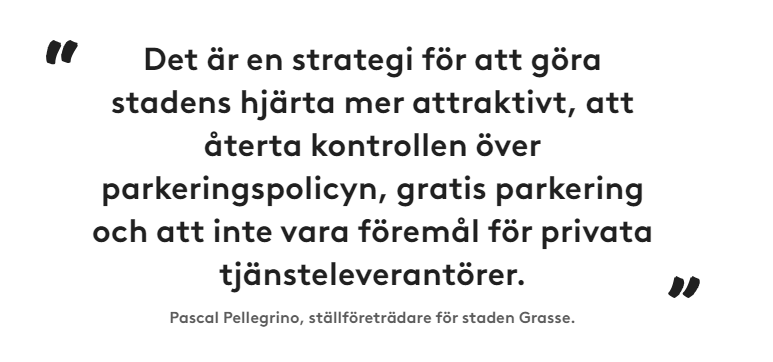 Grasse har uppmärksammat det här och tycker att de priser de företag som etablerat sig på orten skinnar besökarna. Kommunpolitikerna oroas för att detta avskräcker besökare. Så nu har man beslutat att avsluta kontraktet med de som har de största parkeringshusen i staden och betalar 20 miljoner för att bli av med avtalen i förtid. Nu kan kommunen ta över lagom till år 2026 och man planerar att sänka parkeringsavgifterna rejält för att locka till sig fler besökare. Vad det kommer kosta är inte klart men politikerna jobbar med en modell med en gratis halv- eller heltimme och sedan schyssta avgifter efter det. Som det är idag kan det kosta upp till en tia per kvart, vilket snabbt blir stora pengar.