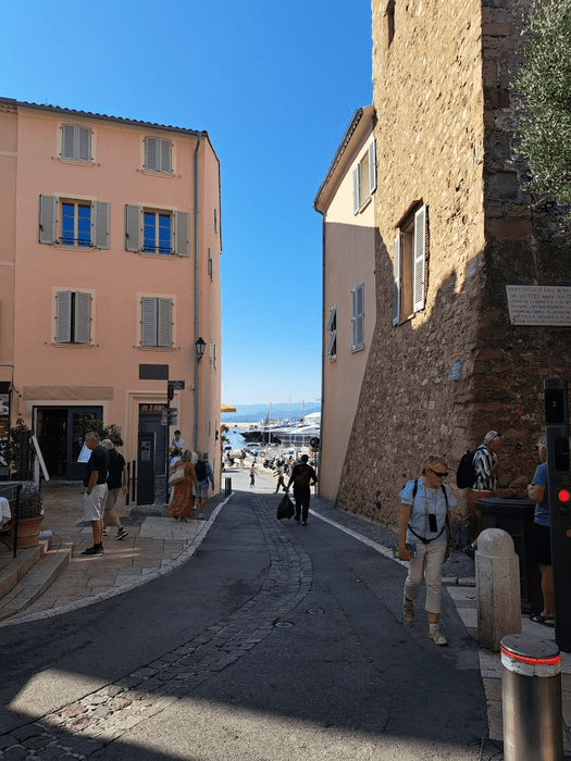Scen 1: Går igenom gamla staden i Antibes på väg mot Le Nomade för att sedan följa kustbandet mot Juan-les-Pins. Inser snart att jag relativt sett ”forsat” förbi ett tiotal personer på en enda gata. Jag saktar ner. Ordentligt, både vad gäller takt och tempo. Lovar mig själv att hålla mig bakom framförvarande gäng. Är glad att mobiler numera har en kamera så jag kan gå och fota allt jag ser. Plötsligt inser jag att jag, som nyss varit fullt fokuserad på målet, faktiskt går här och nu. Jag vet ju vart jag ska, varför fokusera på det? Nu är det färden som är mödan värd. På riktigt. Jag ler för mig själv och tackar i tysthet mina medpromenadtrafikanter för hjälpen att komma ihåg att vara i nuet.