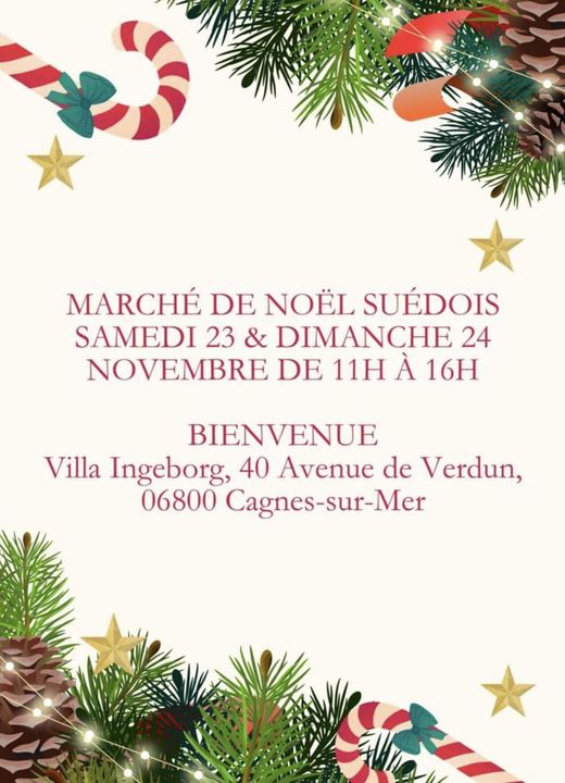 Svenska julmarknaden på Villa Ingeborg den 23 och 24 november får man nästan inte missa! Den arrangeras givetvis av Svensk Kyrkan och här kan man njuta av en äkta svenskdoftande julmarknad. Marknaden håller igång mellan klockan 11 och 16 på Villa Ingeborg i Cagnes-sur-Mer.