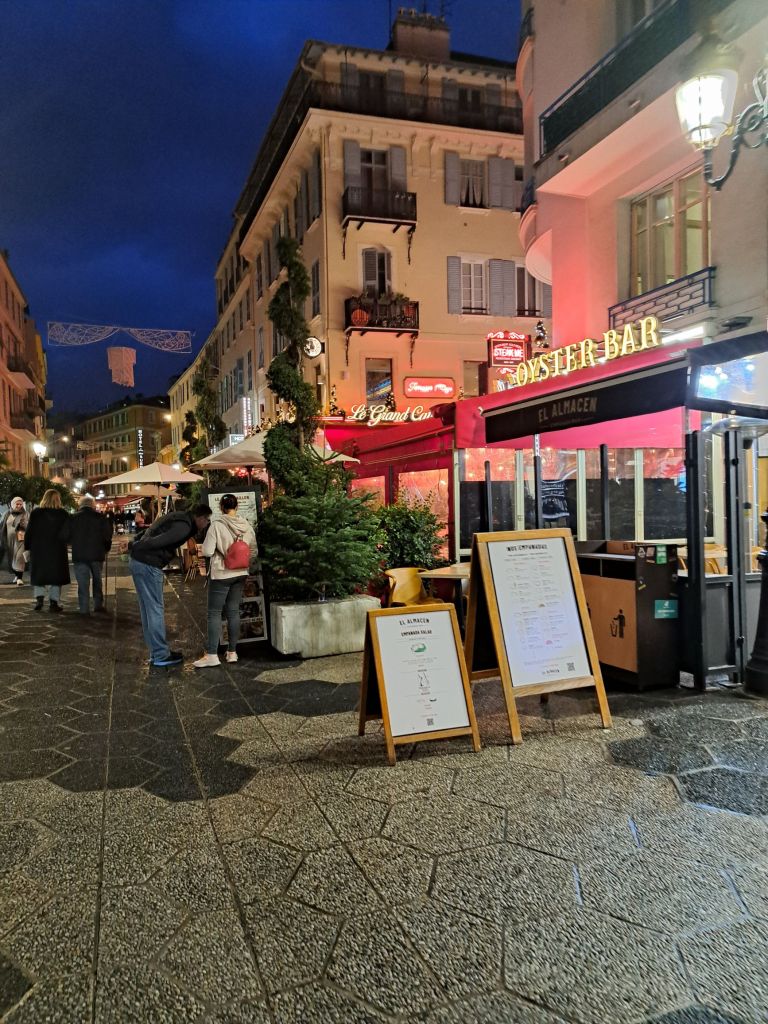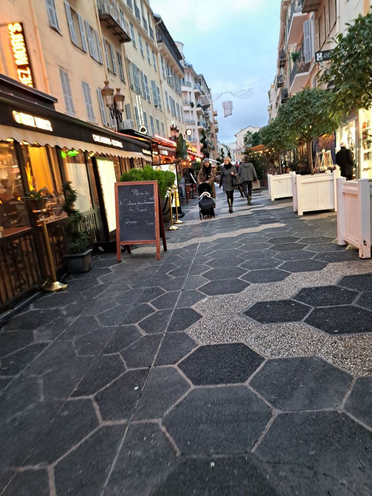 En av de populärare gatorna i Nice centrum är Rue de France. Den löper parallellt med Promenade des Anglais, bara ett kvarter in i staden, men är till skillnad från den paradgatan en folklig och myllrande gata fylld med butiker, restauranger och caféer. Och den är framför allt en gågata, vilket gör den till en fantastisk plats att gå och kika i butiker på eller för att sitta och kika på fokl från ett café eller en restaurang. Vilket väldigt många gör, oavsett årstid.